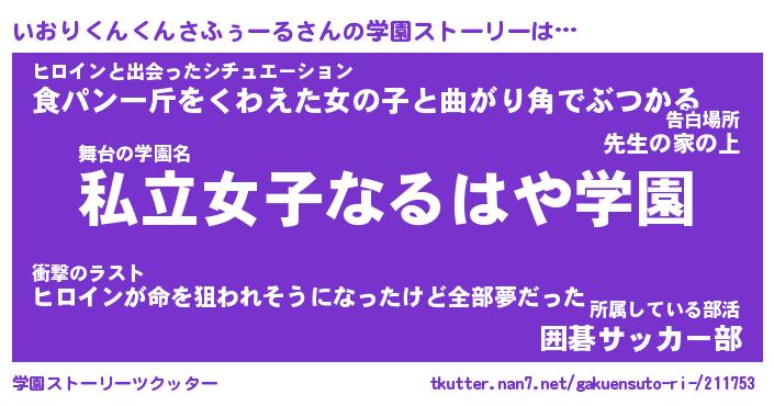 | 胡散臭い通販商品みたいなあだ名 | 『億万長者になれる水晶球…その名も「いおりくんくんさふぅーる」』 |
