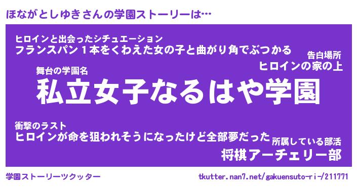 | 肩書あだ名 | 『ほながとしゆき御曹司』 |