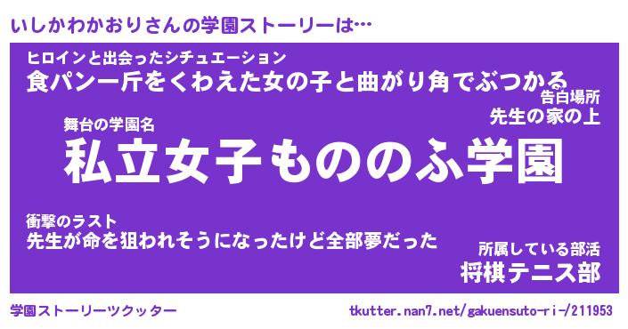 | 女子向けラノベタイトル風あだ名 | 『いしかわかおり姫と円卓の騎士』 |
