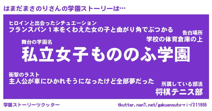 | 男性向けラノベタイトル風あだ名 | 『ハマダマサノリアートオンライン』 |