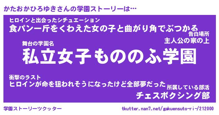 | 女子向けラノベタイトル風あだ名 | 『誰かこのかたおかひろゆきを説明してください! ~契約から始まるウェディング~』 |