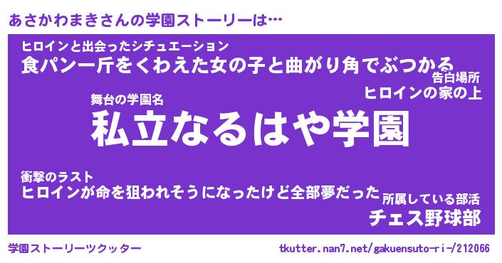 | 伝説のあだ名 | 『伝説のスナイパーあさかわまき』 |