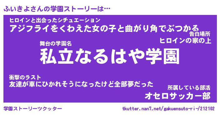 | 告白場所 先生の家の上 …「ふぃぎゅこ」 | 2月17日 06:24 |
