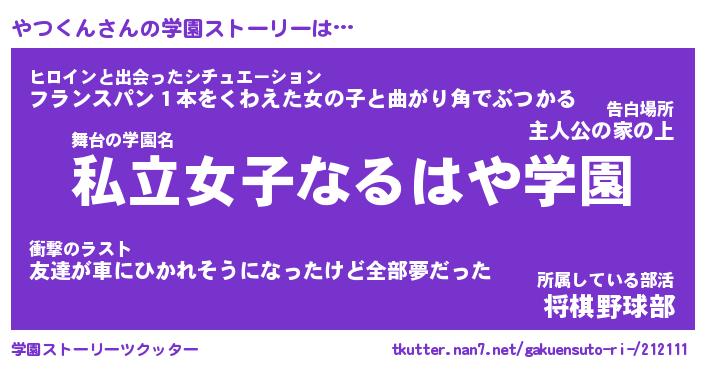 | 男性向けラノベタイトル風あだ名 | 『ヤツクンアートオンライン』 |