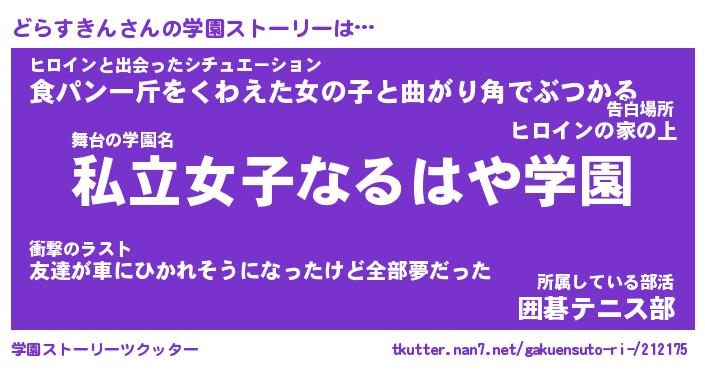 | 告白場所 先生の家の上 …「ふぃぎゅこ」 | 2月17日 06:24 |