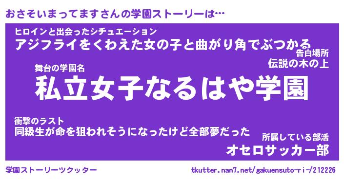 | 告白場所 先生の家の上 …「ふぃぎゅこ」 | 2月17日 06:24 |