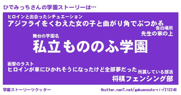 | 男性向けラノベタイトル風あだ名 | 『ひでみっちの憂鬱』 |