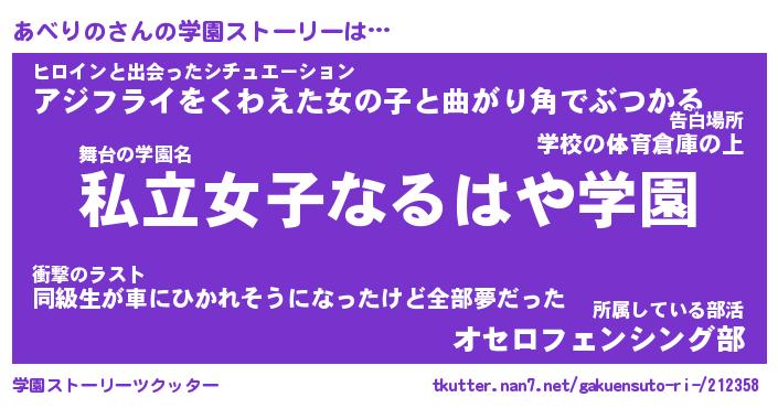 | 伝説のあだ名 | 『封印されしスナイパーあべりの』 |