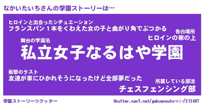 | ヒーロー風カッコイイあだ名 | 『スーパーナカイタイチ』『幻影騎士ナカ』 |