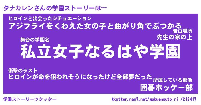 | ヒーロー風カッコイイあだ名 | 『スーパータナカレン』『天弓騎士タナ』 |