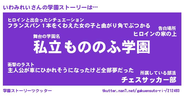 | 男性向けラノベタイトル風あだ名 | 『いわみれいの憂鬱』 |