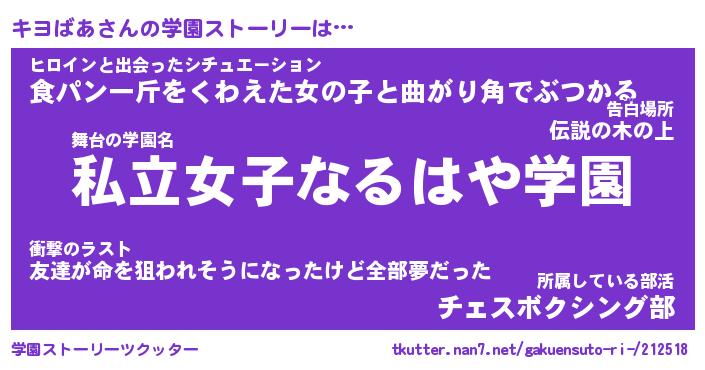 | 女子向けラノベタイトル風あだ名 | 『キヨばあ姫と円卓の騎士』 |