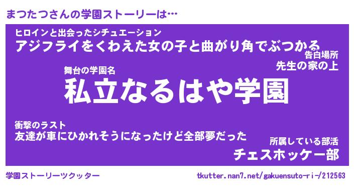| 告白場所 先生の家の上 …「ふぃぎゅこ」 | 2月17日 06:24 |