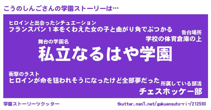 | 女子向けラノベタイトル風あだ名 | 『こうのしんご姫と円卓の騎士』 |
