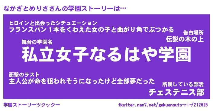 | 伝説のあだ名 | 『封印されしスナイパーなかざとめりさ』 |