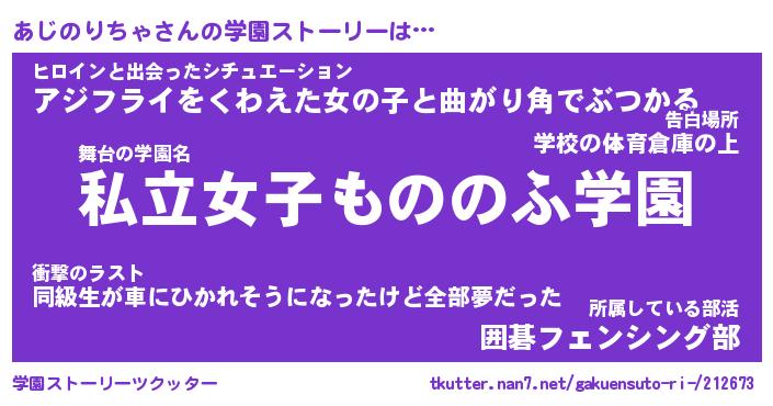 | 女子向けラノベタイトル風あだ名 | 『あじのりちゃ姫と円卓の騎士』 |