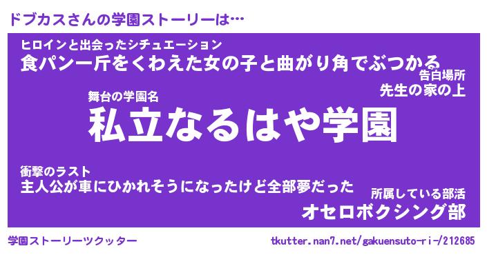 | ヒーロー風カッコイイあだ名 | 『スーパードブカス』『暗黒騎士ドブ』 |