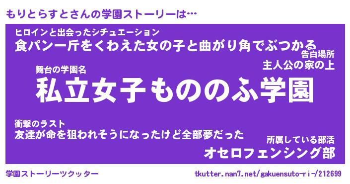 | ツイッター | もりとらすとさんのツイッターID『fukuyoka_star』 |
