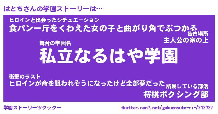 | 告白場所 先生の家の上 …「ふぃぎゅこ」 | 2月17日 06:24 |