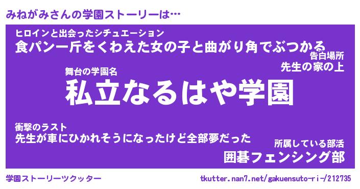 | 告白場所 先生の家の上 …「ふぃぎゅこ」 | 2月17日 06:24 |
