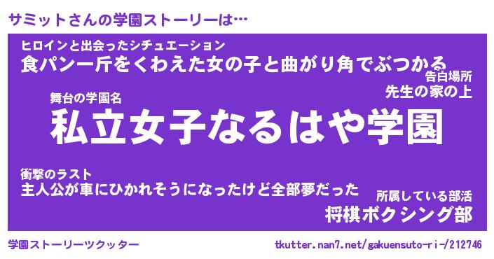 | 告白場所 先生の家の上 …「ふぃぎゅこ」 | 2月17日 06:24 |
