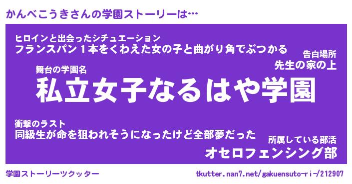 | 女子向けラノベタイトル風あだ名 | 『かんべこうき姫と円卓の騎士』 |