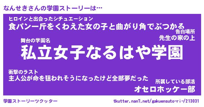 | 告白場所 先生の家の上 …「ふぃぎゅこ」 | 2月17日 06:24 |