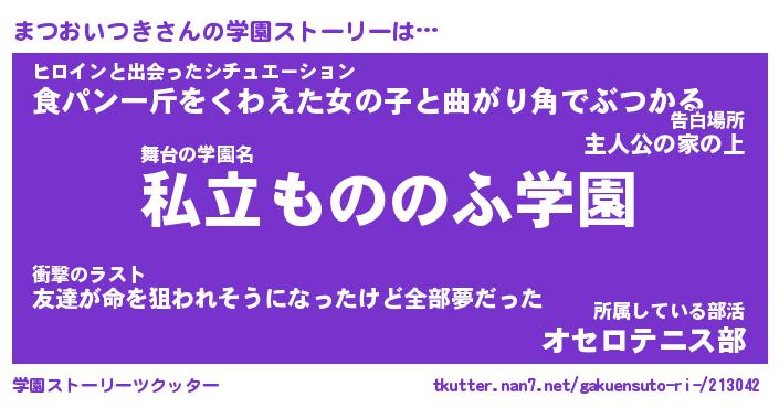 | 男性向けラノベタイトル風あだ名 | 『まつおいつきの憂鬱』 |