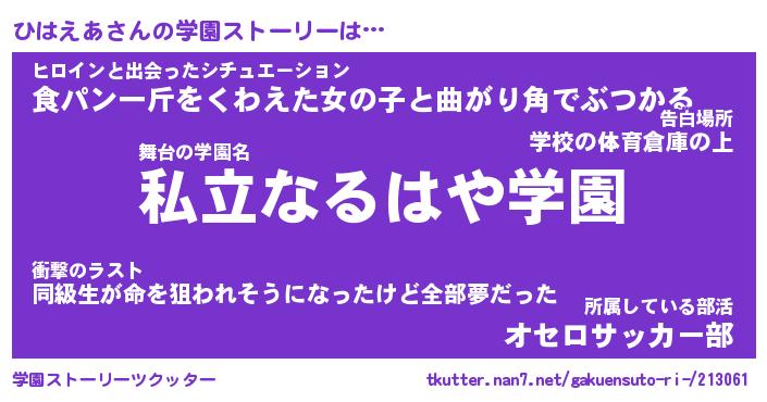 | 告白場所 先生の家の上 …「ふぃぎゅこ」 | 2月17日 06:24 |