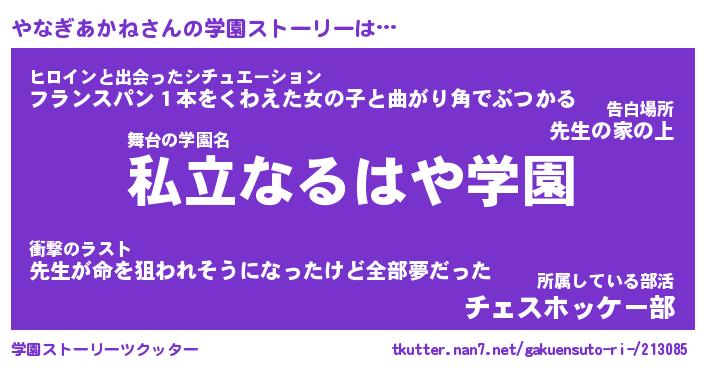 | ヒーロー風カッコイイあだ名 | 『スーパーヤナギアカネ』『暗黒騎士ヤナ』 |