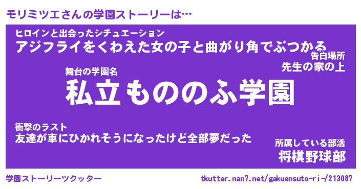 | 男性向けラノベタイトル風あだ名 | 『モリミツエの憂鬱』 |