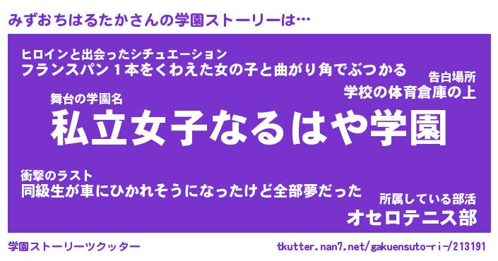 | 女子向けラノベタイトル風あだ名 | 『誰かこのみずおちはるたかを説明してください! ~契約から始まるウェディング~』 |