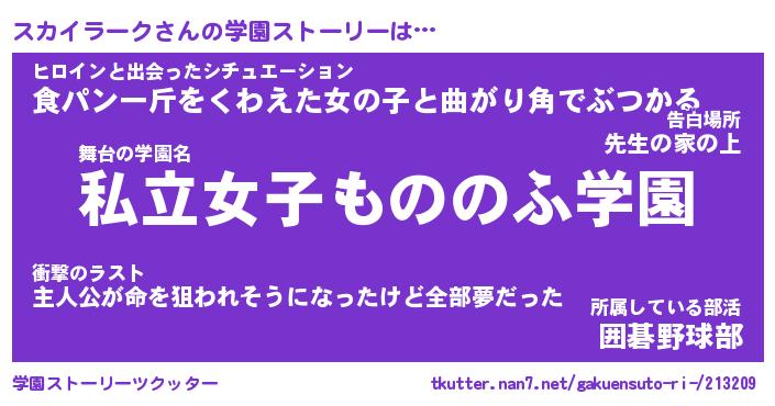 | 男性向けラノベタイトル風あだ名 | 『スカイラークアートオンライン』 |