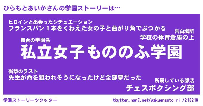 | 告白場所 先生の家の上 …「ふぃぎゅこ」 | 2月17日 06:24 |
