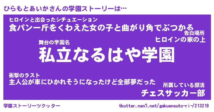 | 告白場所 先生の家の上 …「ふぃぎゅこ」 | 2月17日 06:24 |