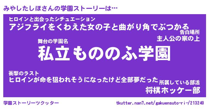 | 男性向けラノベタイトル風あだ名 | 『みやしたしほの憂鬱』 |