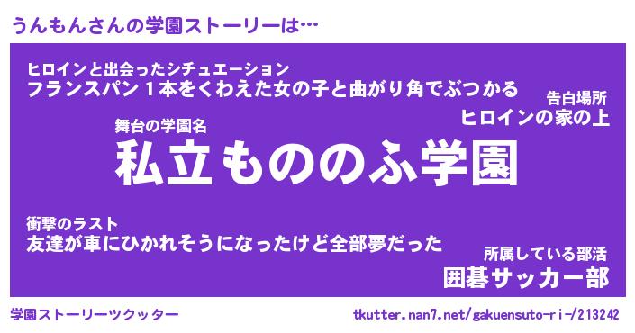 | 男性向けラノベタイトル風あだ名 | 『うんもんの憂鬱』 |