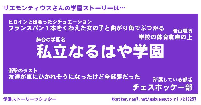 | 男性向けラノベタイトル風あだ名 | 『サエモンティウスの憂鬱』 |