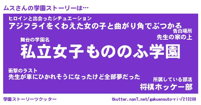 | ファンタジー風あだ名 | 『ムスフェル』『エターナルムスー』 |