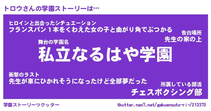 | 告白場所 先生の家の上 …「ふぃぎゅこ」 | 2月17日 06:24 |