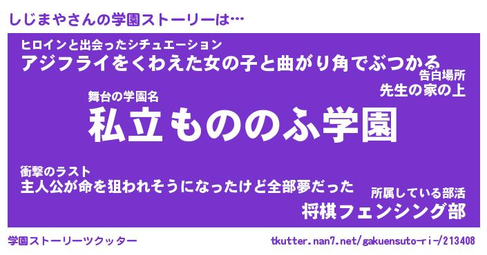 | 女子向けラノベタイトル風あだ名 | 『(仮)しじまやのやんごとなき事情』 |