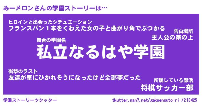 | 男性向けラノベタイトル風あだ名 | 『みーメロンの憂鬱』 |