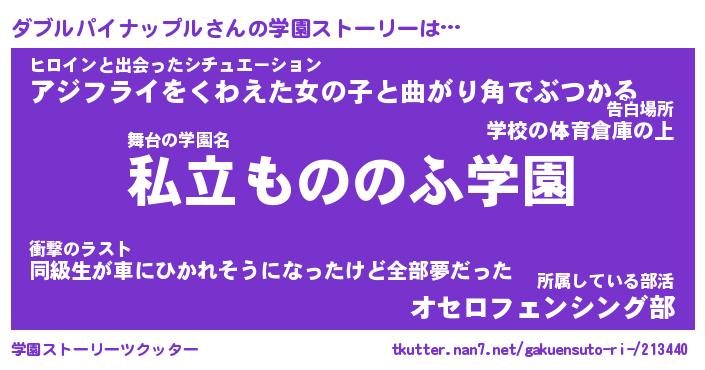 | 女子向けラノベタイトル風あだ名 | 『(仮)ダブルパイナップルのやんごとなき事情』 |