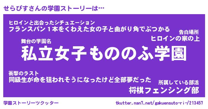 | 意味不明あだ名 | 『ペロリンせらぴす』『永久保存せらぴす』 |