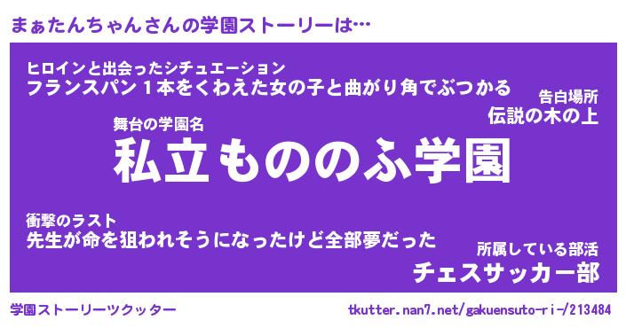 | 女子向けラノベタイトル風あだ名 | 『(仮)まぁたんちゃんのやんごとなき事情』 |