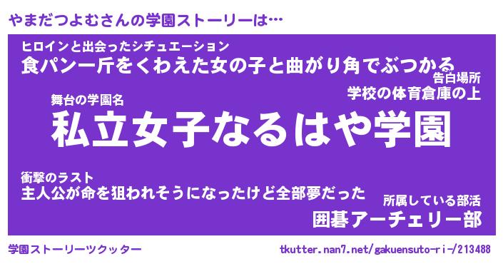| 伝説のあだ名 | 『封印されしスナイパーやまだつよむ』 |