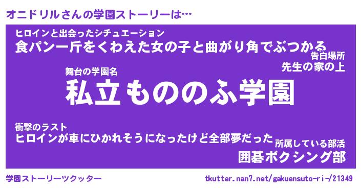 | 男性向けラノベタイトル風あだ名 | 『オニドリルの憂鬱』 |