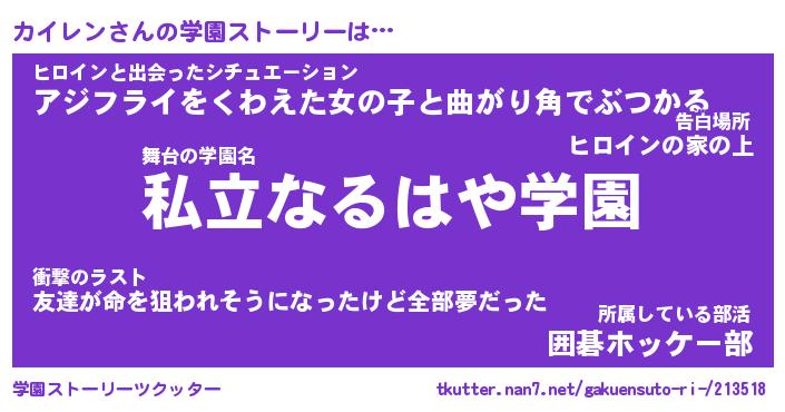 | ヒーロー風カッコイイあだ名 | 『スーパーカイレン』『天弓騎士カイ』 |