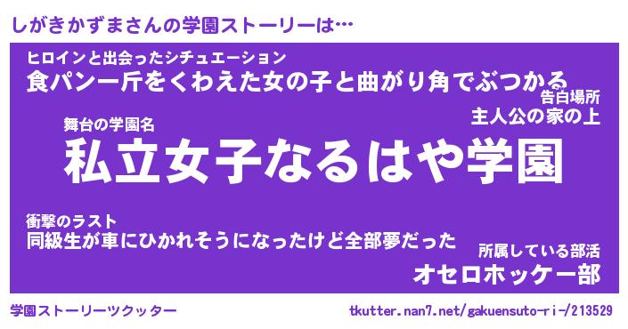 | 告白場所 先生の家の上 …「ふぃぎゅこ」 | 2月17日 06:24 |