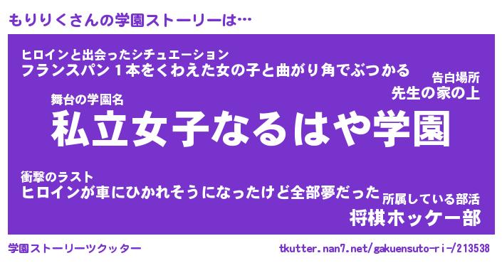 | 告白場所 先生の家の上 …「ふぃぎゅこ」 | 2月17日 06:24 |